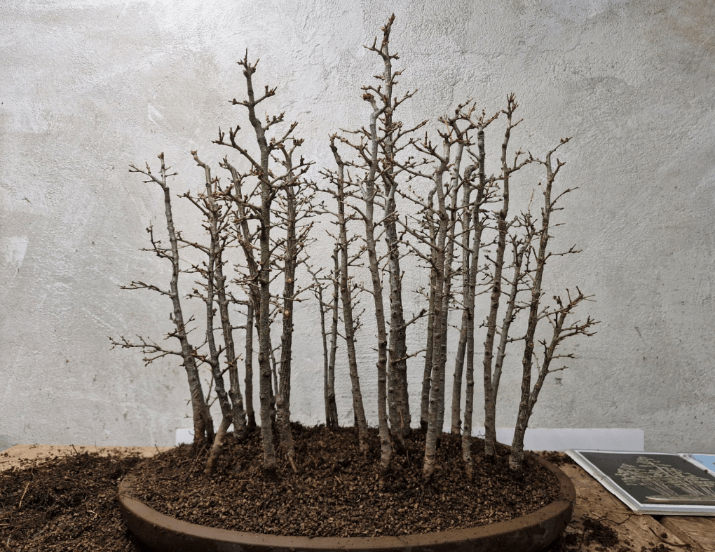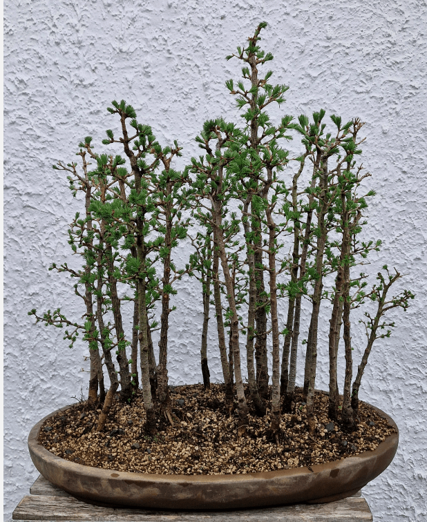Wenn man hin und wieder in Büchern blättert, fallen einem solche Zitate ins Auge und oft stimmen sie. Seit meinen ersten Versuchen mit Bonsai bin ich auch immer wieder über Gruppen und Waldpflanzungen gestolpert. Ich fand sie immer schon toll. Sie wirken real, lebendig, zum Teil sucht man das Miniatur Reh zwischen den Stämmen oder den Vogel in den Kronen der Bäume.